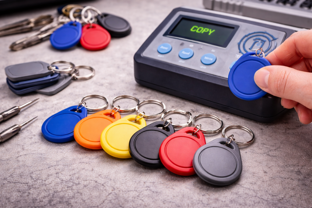 Oferujemy profesjonalne kopiowanie breloków domofonowych oraz pastylek RFID używanych w systemach kontroli dostępu do budynków mieszkalnych, osiedli i biur. Jeśli potrzebujesz dodatkowego breloka dla domownika, pracownika lub najemcy – wykonamy duplikat szybko i sprawnie.